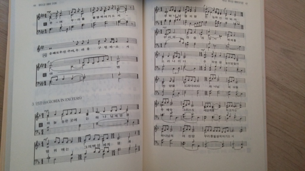 제가 예배 도중 가장 눈에 들어왔던 부분은 예배 초반 기도와 봉헌 이후 기도에 성직자가 제대 쪽을 향해 있다는 점이었습니다. 예전에 갔을 때는 영광송을 부를 때도 목사님이 제대 쪽을 향해서 영광송을 불렀습니다.