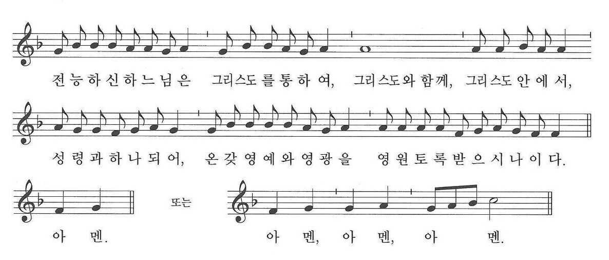 전능하신 하느님은 그리스도를 통하여, 그리스도와 함께, 그리스도 안에서, 성령과 하나되어, 온갖 영예와 영광을 영원토록 받으시나이다.