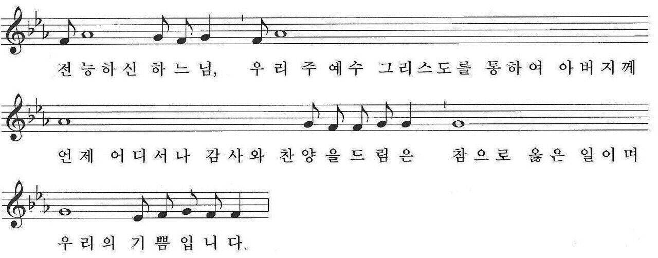 언제 어디서나 감사와 찬양을 드림은 참으로 옳은 일이며 우리의 기쁨입니다.