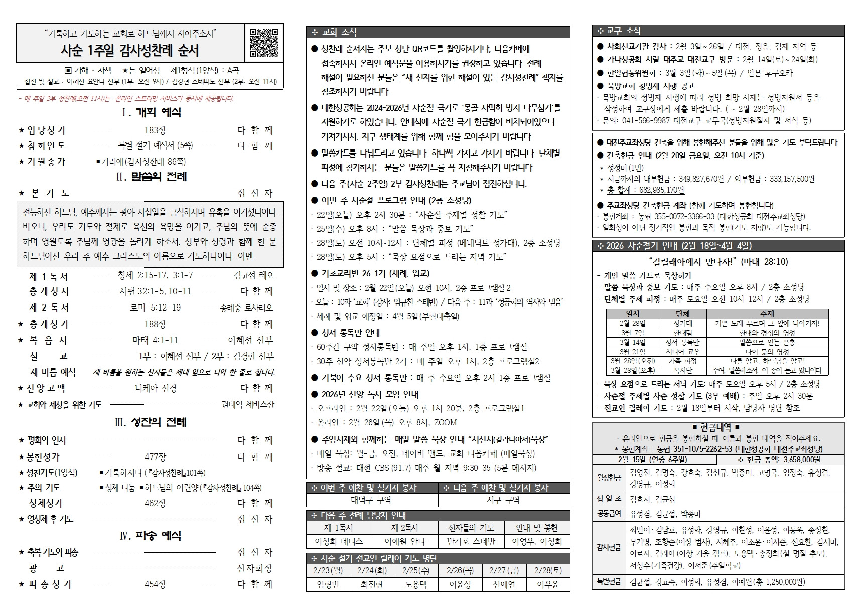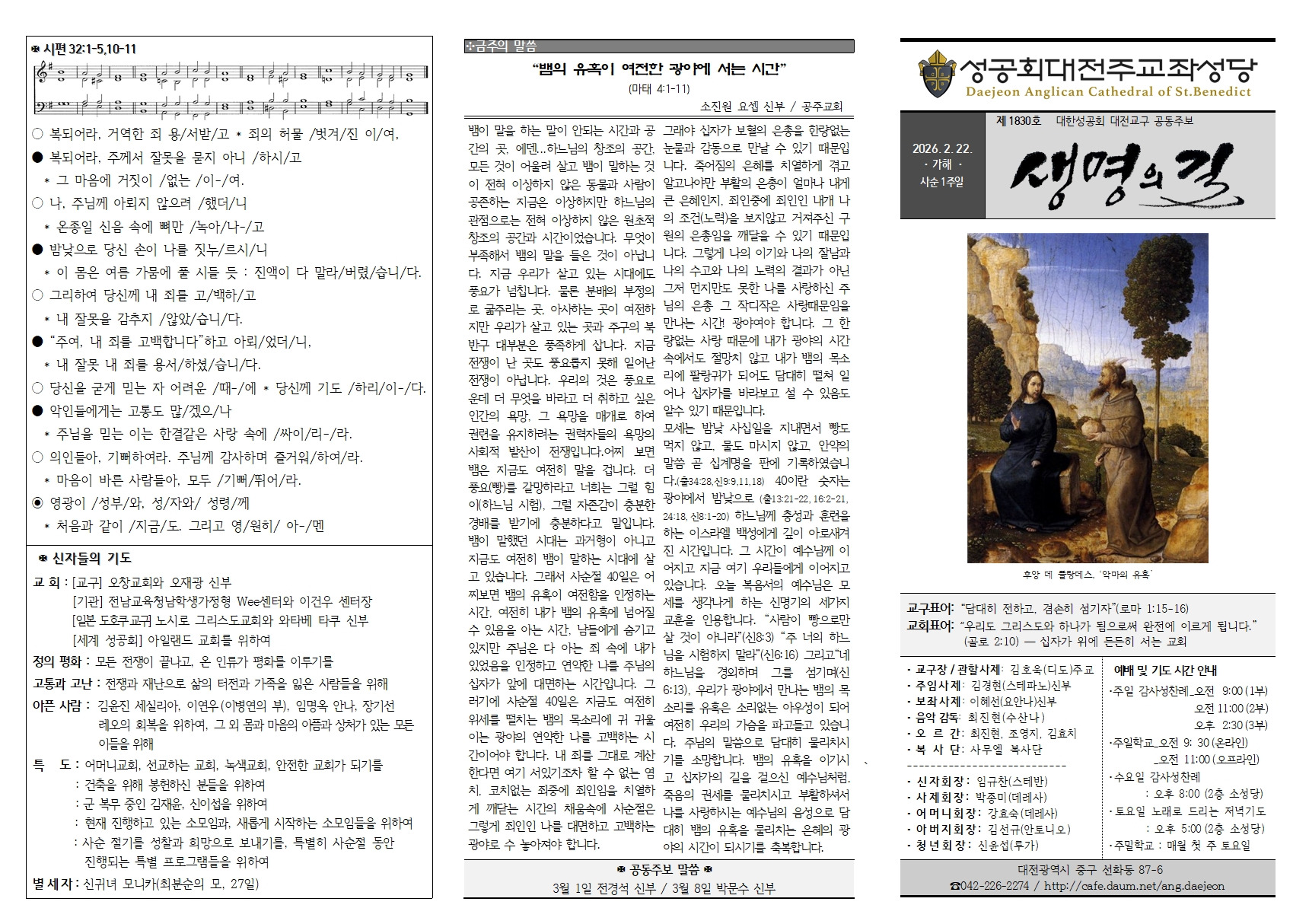 [주보][2026.2.22] 가해_사순 1주일_주보 작성자요안나|작성시간26.02.20|조회수178 목록 댓글 0 글자크기 작게가 글자크기 크게가 [26.2.22]가해_사순 1주일_주보.pdf381.33KB 첨부파일첨부된 파일이 3개 있습니다. jpg 파일 [26.2.22]가해_사순 1주일_주보001.jpg 다운로드 jpg 파일 [26.2.22]가해_사순 1주일_주보002.jpg 다운로드 pdf 파일 [26.2.22]가해_사순 1주일_주보.pdf 다운로드 다음검색 현재 게시글 추가 기능 열기 북마크 공유하기 신고 센터로 신고 댓글 댓글 0 댓글쓰기 답글쓰기 댓글 리스트
