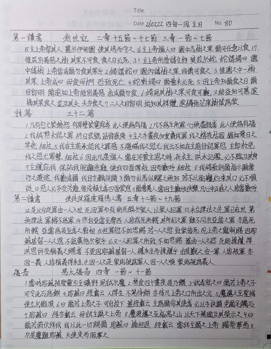 전능하신 하느님, 예수께서는 광야 사십 일을 금식하시며 유혹을 이기셨나이다. 비오니, 우리도 기도와 절제로 육신의 욕망을 이기고, 주님의 뜻에 순종하며 영원토록 주님께 영광을 돌리게 하소서. 성부와 성령과 함께 한 분 하느님이신 우리 주 예수 그리스도의 이름으로 기도하나이다. 아멘.