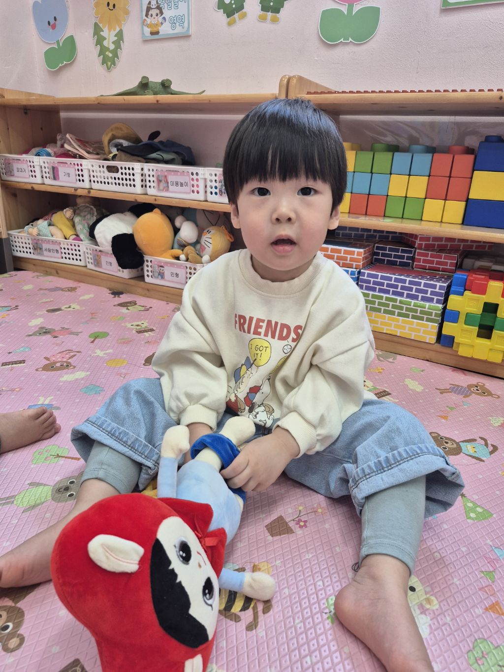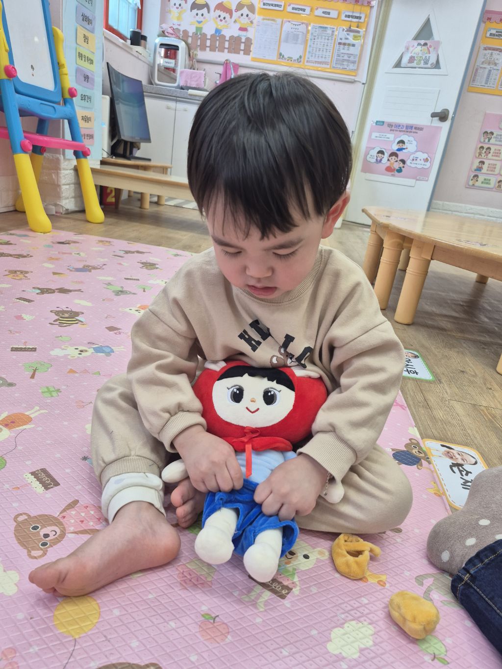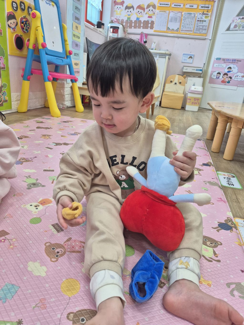 도움을 받아 입히고 신겼어요~^^