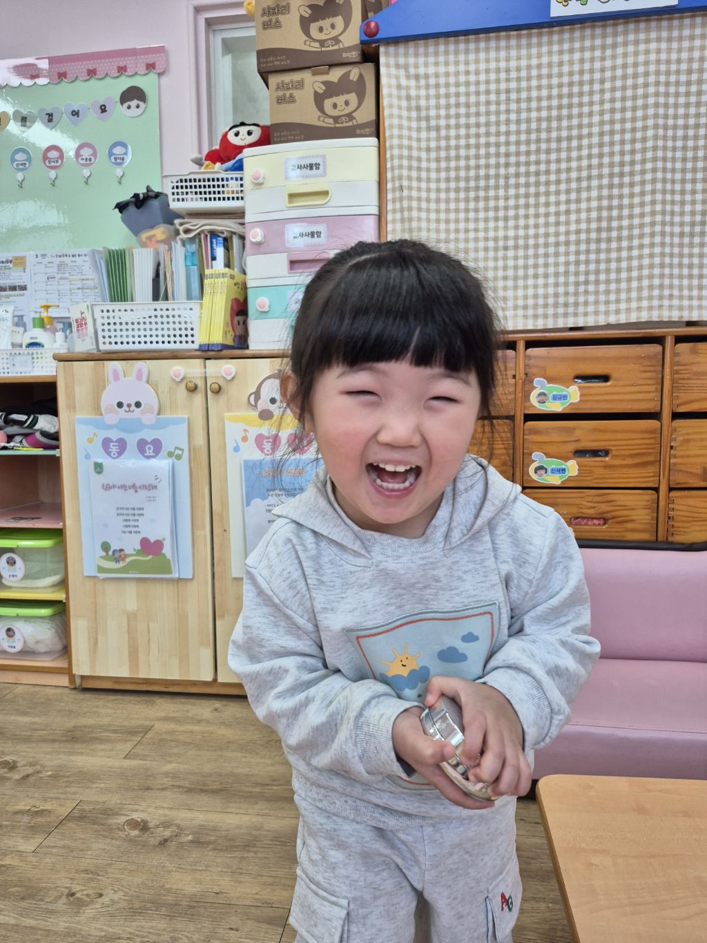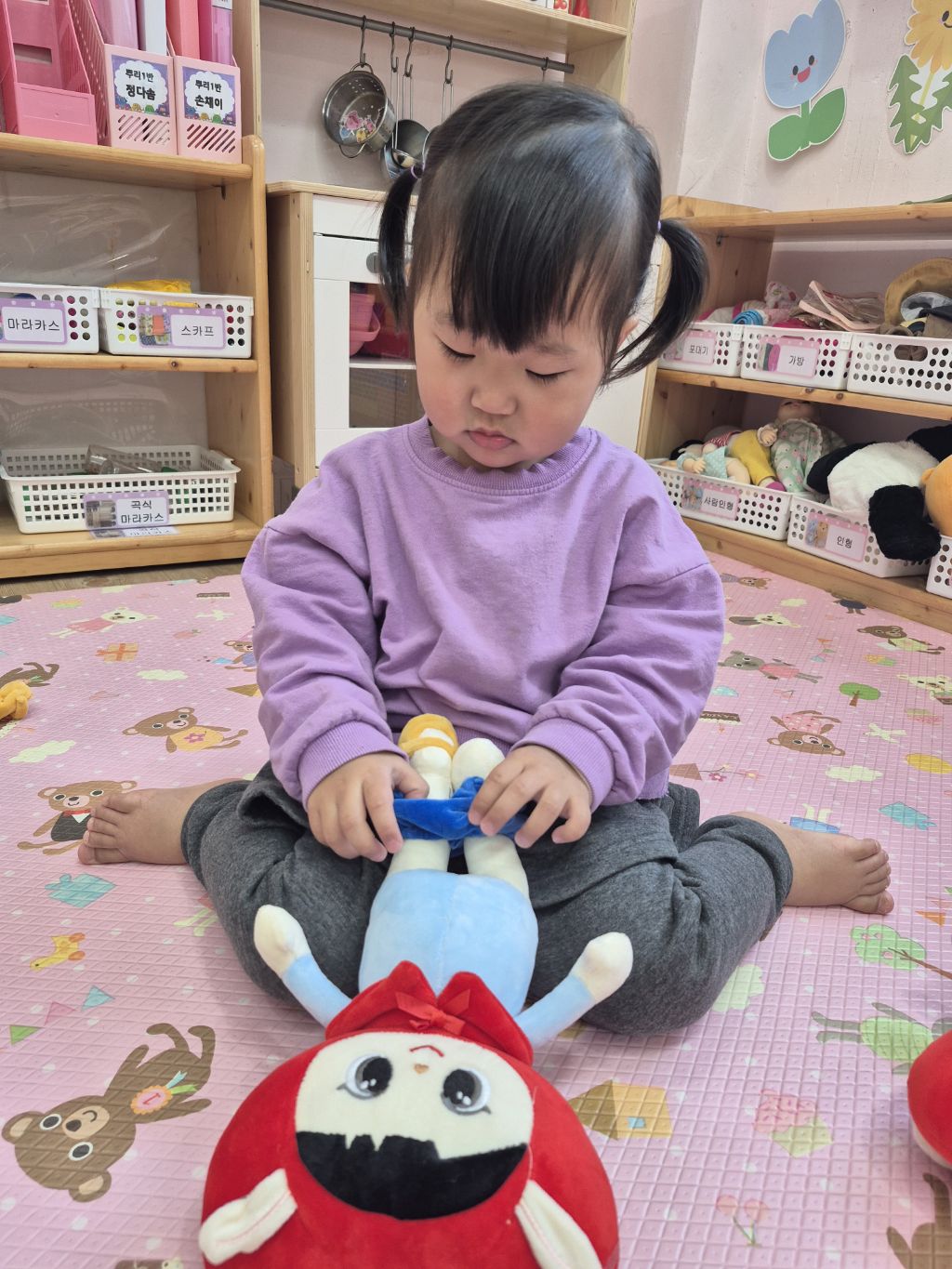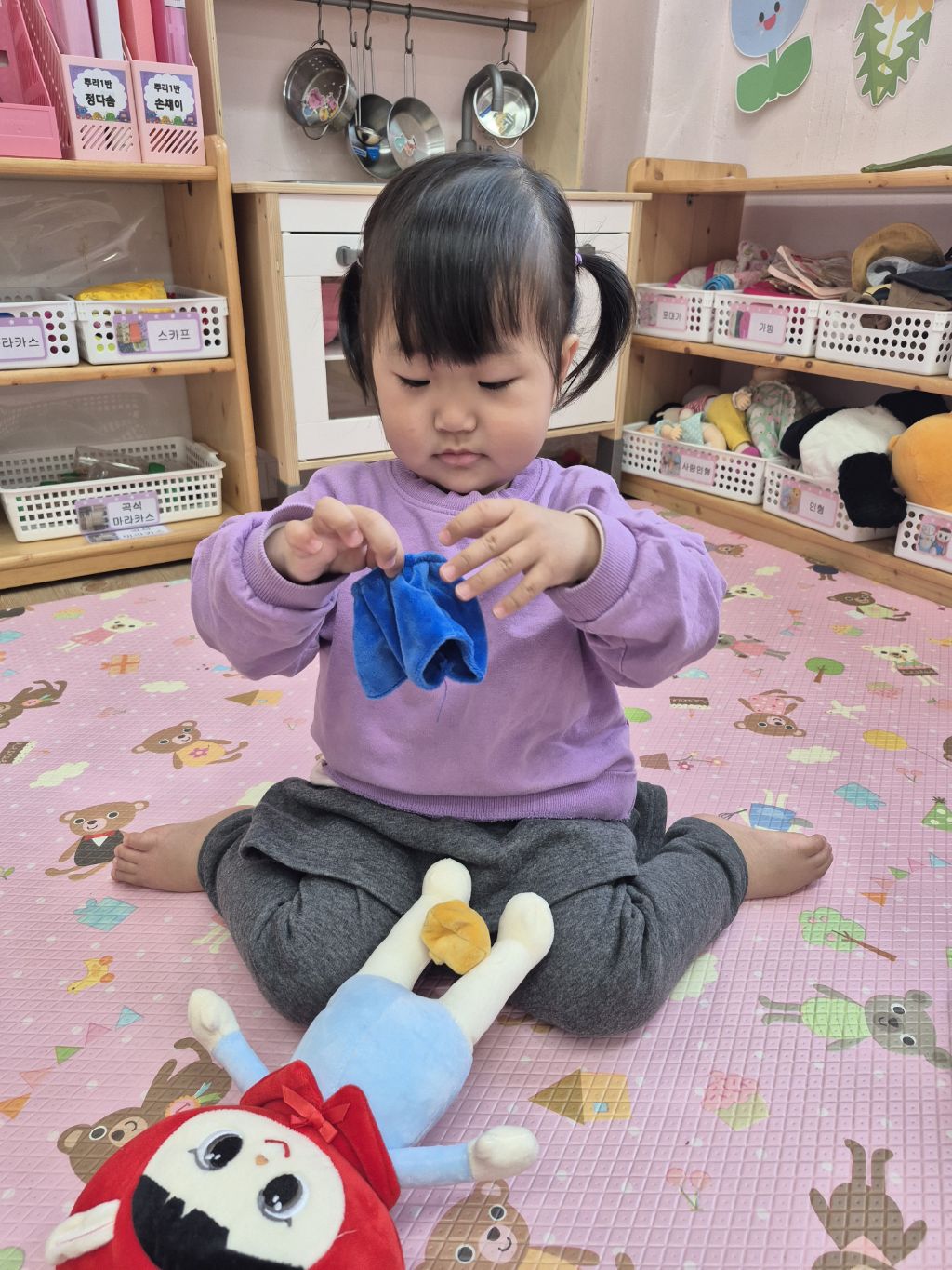 도움을 받아 입히고 신겼어요~^^