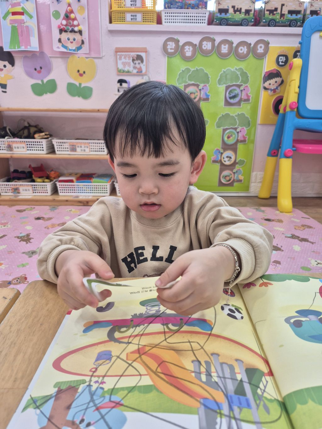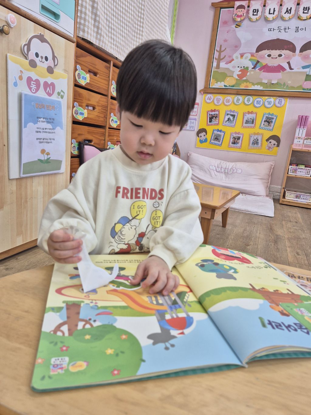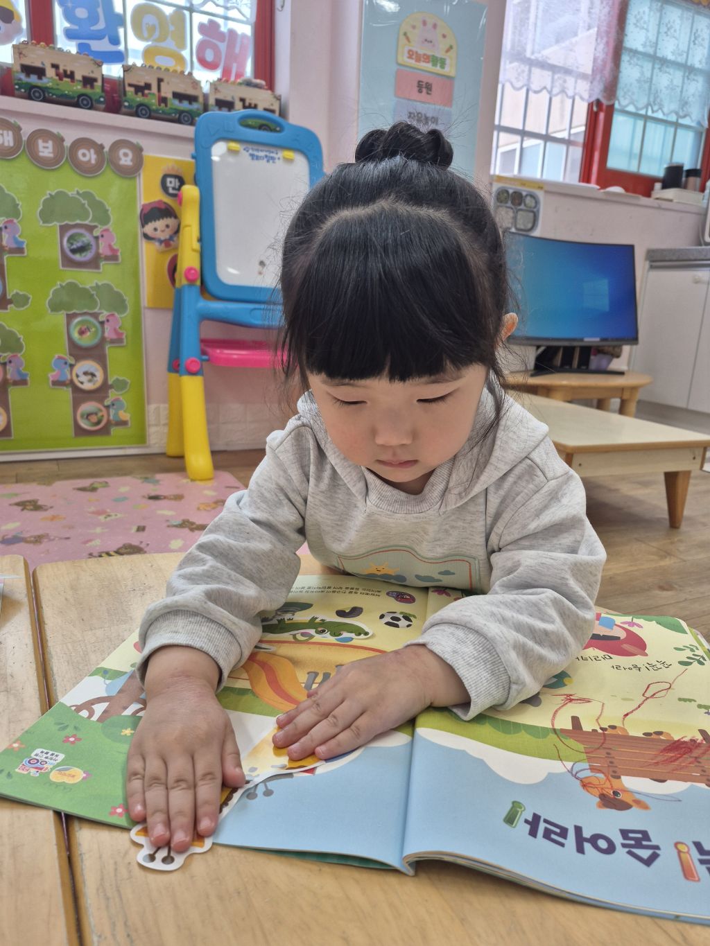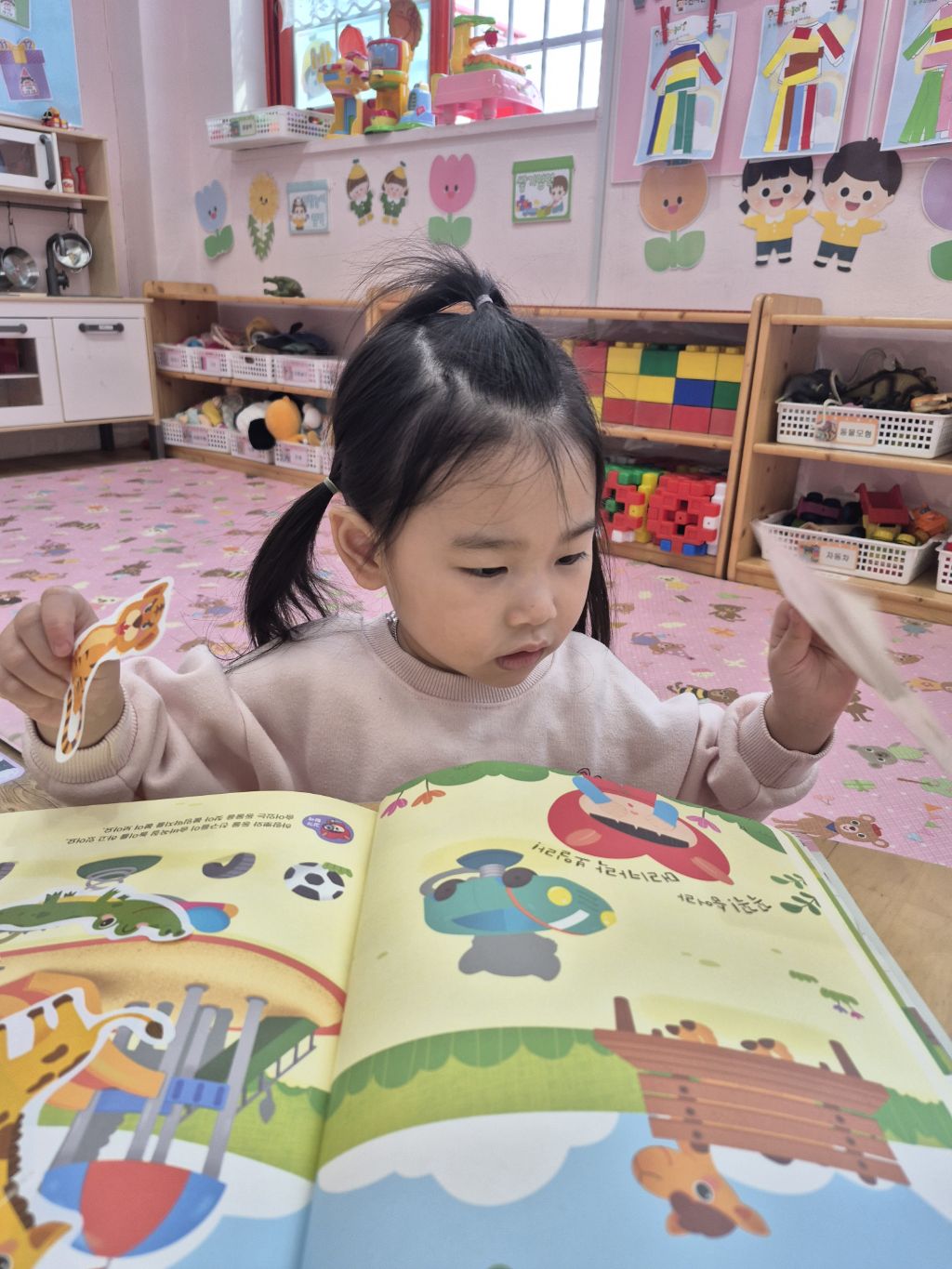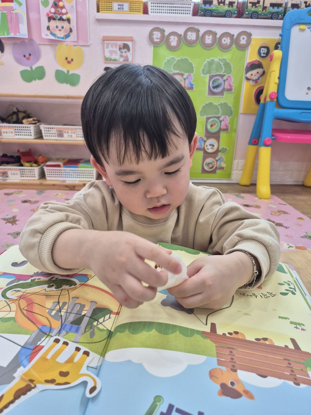 숨어있는 동물을 찾아 스티커를 붙였어요.