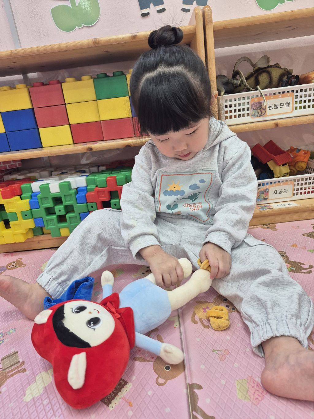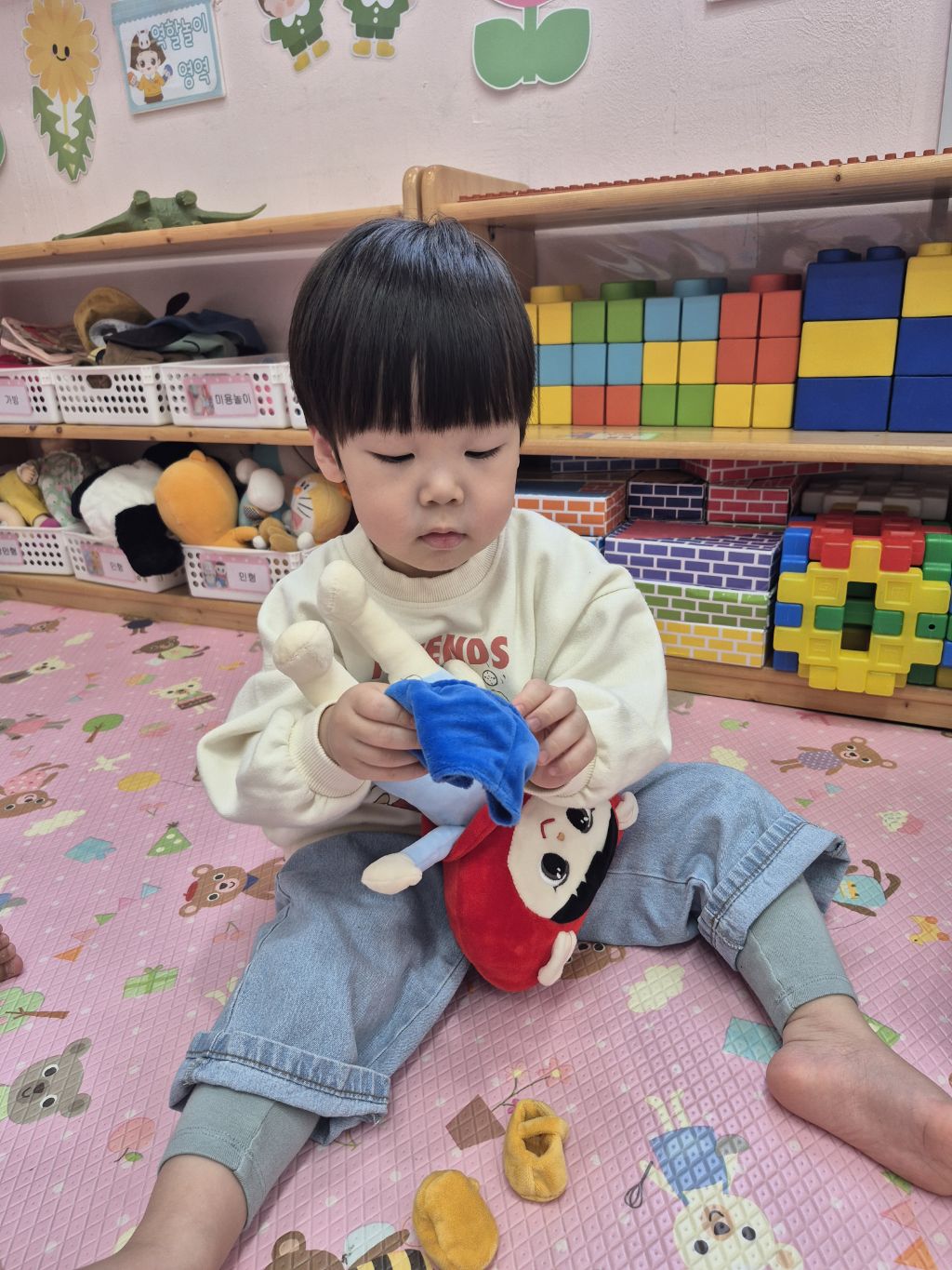 바지도 벗겨 보고 다시 입혀 보았어요.