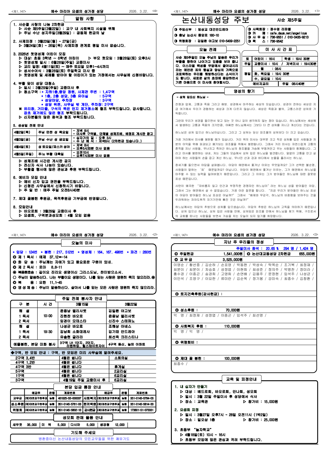 주보 2026 0322 사순 제5주일 제1147호 작성자Regina 75|작성시간26.03.21|조회수125 목록 댓글 0 글자크기 작게가 글자크기 크게가 다음검색 현재 게시글 추가 기능 열기 북마크 공유하기 신고 센터로 신고 댓글 댓글 0 댓글쓰기 답글쓰기 댓글 리스트