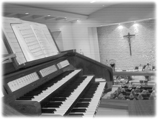 평일 미사에서 반주자는 오르가니스트이고 음악감독입니다.