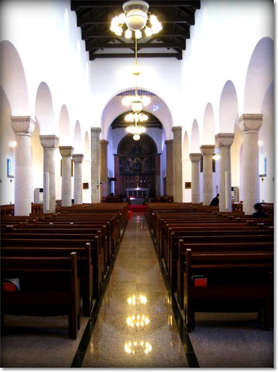내부 제단 양측면에는 네 개의 아치가 있는데, 이들을 3개의 쌍주(雙柱)가 지지하고 있습니다..