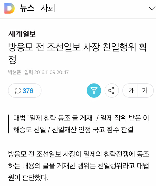 방응모 전 조선일보 사장이 일제의 침략전쟁에 동조하는 내용의 글을 게재한 행위는 친일행위라고 대법원이 판단했다.