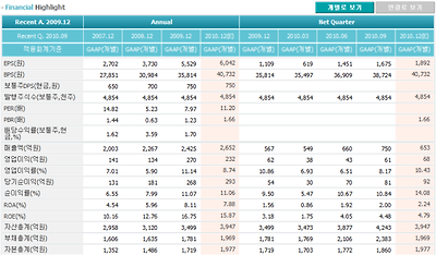 향후 2011년이 되면 미래가치를 반영하여 주가는7만원에서 최대 9만원까지도 형성 가능하다는 판단을 함