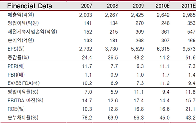 2011년도 시장에서는 지분법이익을 160~170억에 달할 것으로 판단하고 있어 동사에 대한 높은 수익개선이 두드러지게 나타날 것으로 판단됩니다.