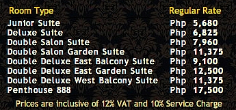 가격 출처: 필즈 프라자 스위츠 홈페이지