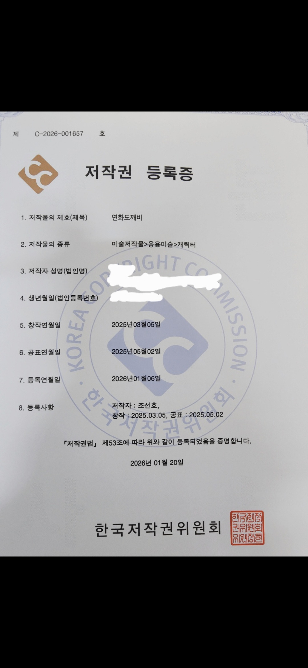 미술저작물 등록 완료! 작성자도깨비왕|작성시간26.01.25|조회수20 목록 댓글 1 글자크기 작게가 글자크기 크게가 다음검색 현재 게시글 추가 기능 열기 북마크 공유하기 신고 센터로 신고 댓글 댓글 1 댓글쓰기 답글쓰기 댓글 리스트 작성자여왕도깨비 | 작성시간 26.02.06 이미지도 저작권 등록되었네요~~축하드려요~~~ 댓글 전체보기