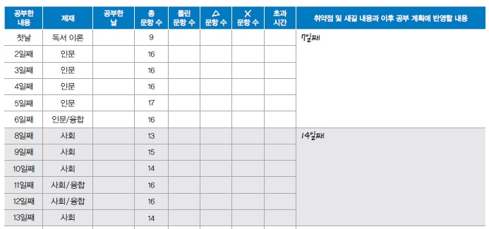 2) 공부한 날, △ 문항과 × 문항의 추이를 보며 학습 습관을 점검하고 다시 봐야 할 내용도 챙겨 본다.