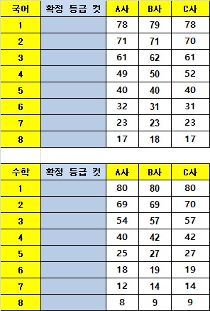 아래 예상 등급 컷은 시험 당일 입시 기관에서 발표한 자료입니다.