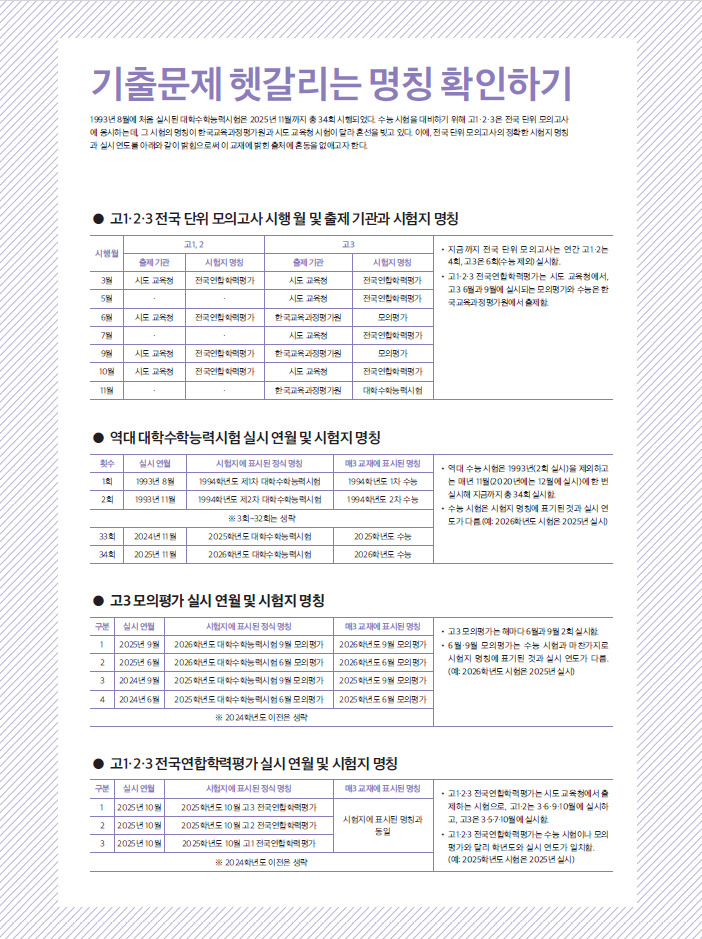 ※ 대학수학능력시험 모의평가(6, 9월)는 한국교육과정평가원에서 주관하며, 시행일은 2026년 1월 중 확정 예정