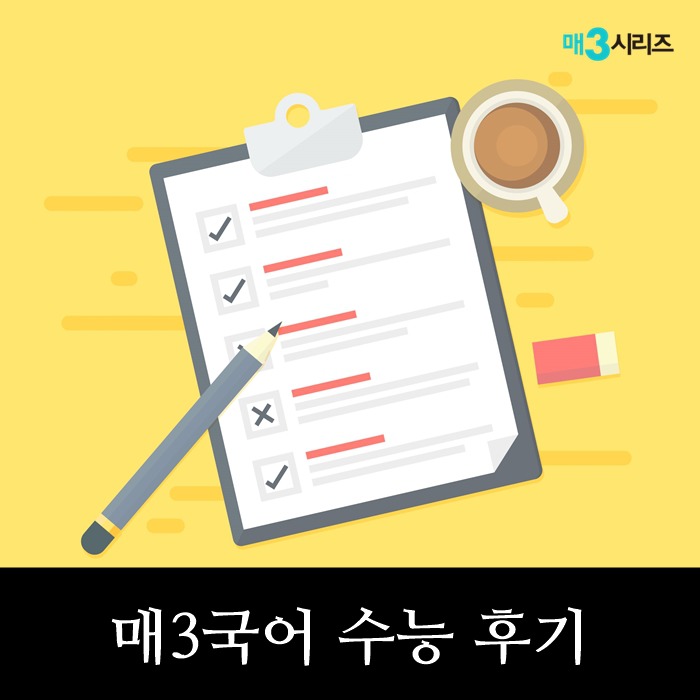 오늘은 고려대 합격 선배의 매3 공부 후기를 준비해 왔어요. 특히 문법 영역이 약해 고민 중인 수험생이라면 필독! '매3문법'으로 자신의 취약점을 완벽하게 보완하고 여유롭게 수능 최저 기준을 충족했다는 선배의 공부 후기, 지금부터 두 눈 부릅뜨고 같이 살펴볼까요?