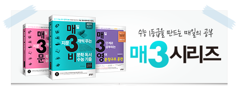 매3과 매일 공부하던 그대로, 2019 수능 만점을 만들어 봅시다! 아래 배너를 클릭하면 지금 바로 '매3문법' 공부를 시작합니다.