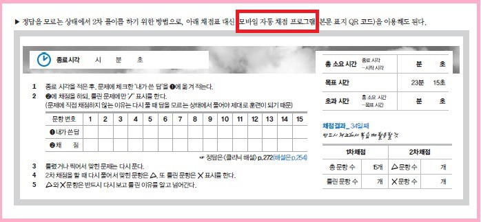 ‘모바일 자동 채점 프로그램‘을 개발하여 이용할 수 있게 하였습니다.(표지 QR 코드로 이용 가능)