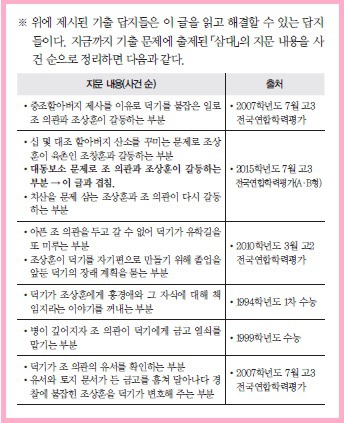 매3문에 담지 못한 전국 단위 시험에 출제된 해당 작품의 문제와 답지 중 중요하고 유용한 것은 일목요연하게 정리하였습니다.
