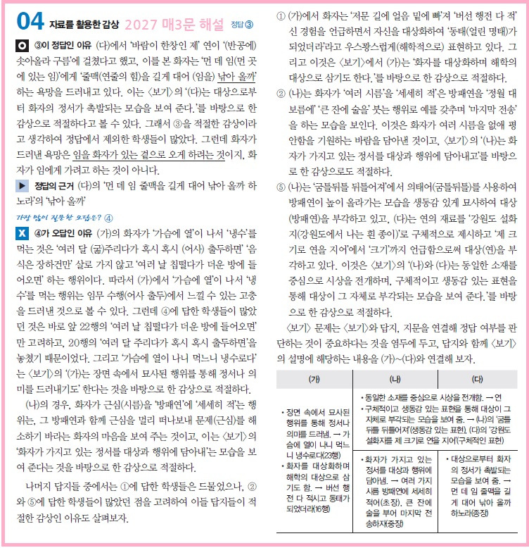 ▼ 2026 수능 국어 34번 문제 해설(2027 매3문 클리닉 해설 p.256에서)