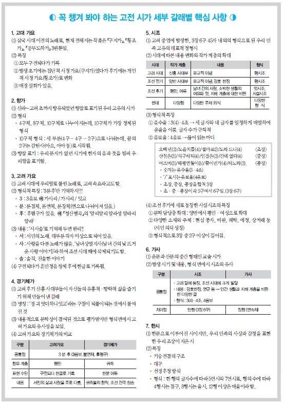 ▼ 『매3문』해설 113쪽 "꼭 챙겨 봐야 하는 고전 시가 세부 갈래별 핵심 사항"