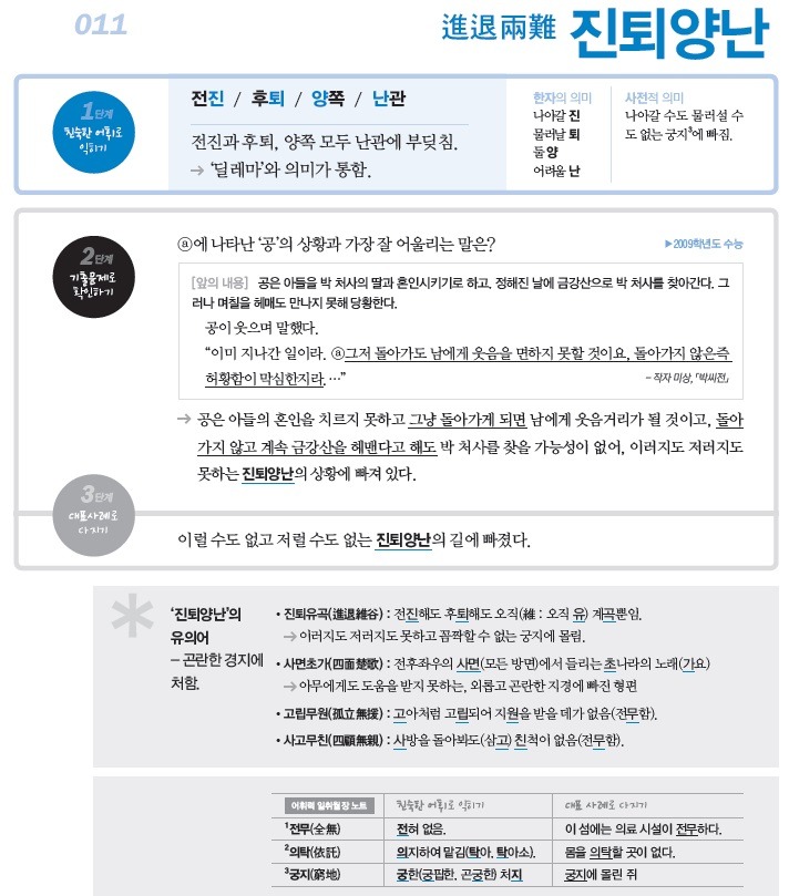 수능/내신 빈출 한자 성어(진퇴양난)와,