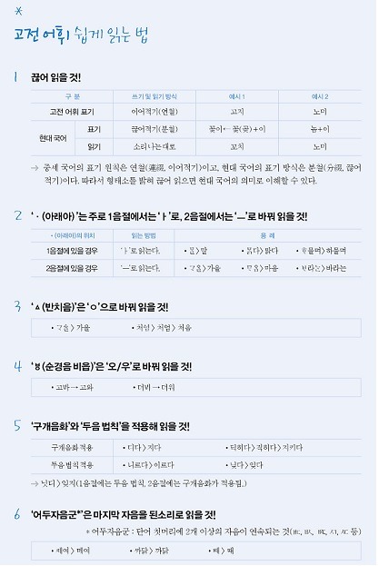 아울러, 국어 영역 B형에서는 고어가 그대로 노출되므로 읽을 수도 있어야 합니다.