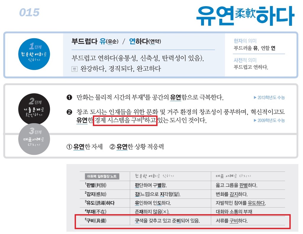 정답인 '구비'는 <매3어휘> 28쪽에서도 다루고 있습니다.