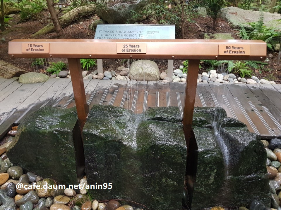 ▲ 돌을 침식시킨 물방울의 힘! 15년, 25년, 50년의 차이를 눈으로 확인시켜 주는, 벤쿠버 카필라노 현수교 공원 설치물.