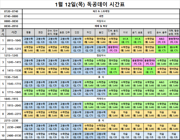 1월 13일 독공데이 실시 작성자산골짜기 김선생|작성시간17.01.13|조회수269 목록 댓글 0 글자크기 작게가 글자크기 크게가 오랜만에 독공데이(독하게 공부만 하는 날)를 실시했습니다. 시간표가 진짜 독하죠?^^ 다음검색 현재 게시글 추가 기능 열기 북마크 공유하기 신고 센터로 신고 댓글 댓글 0 댓글쓰기 답글쓰기 댓글 리스트