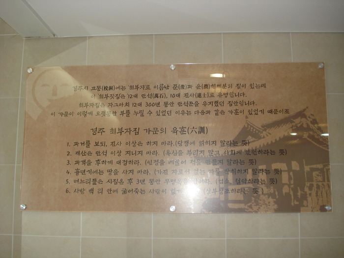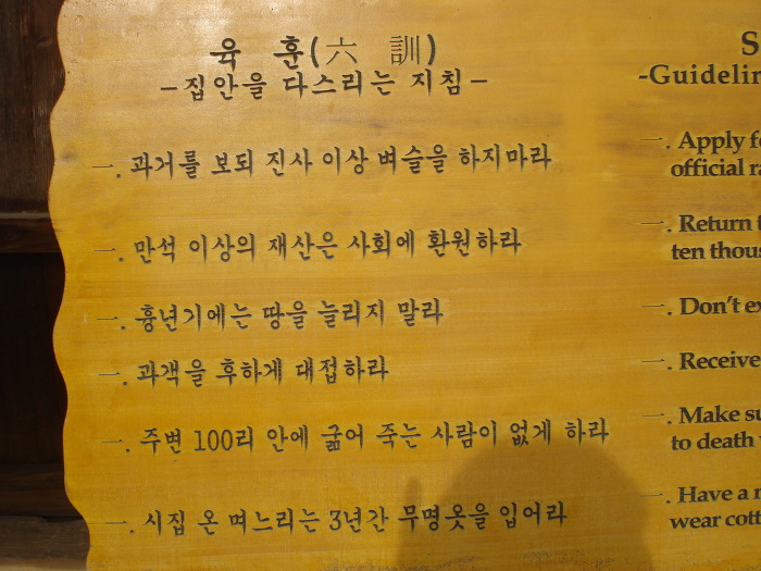 경주 최부자집 육훈이 걸려 있었고...