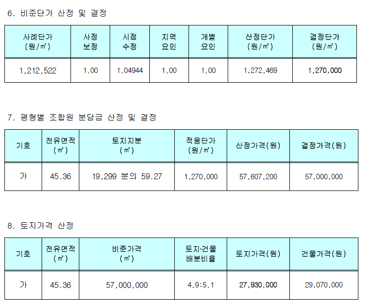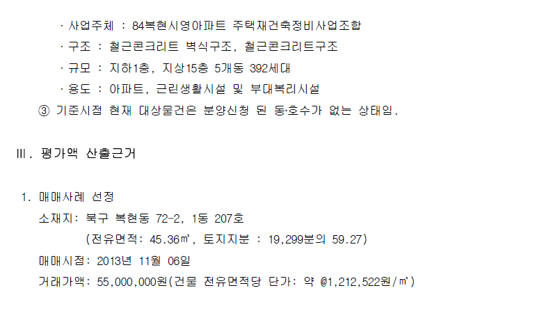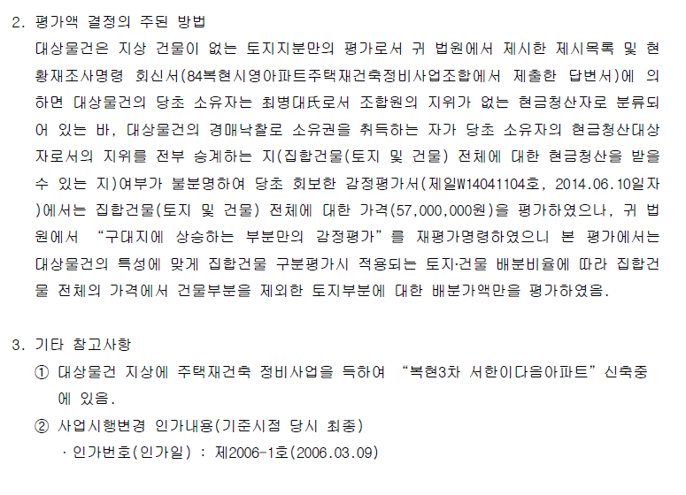 (감정평가는 집합건물로 보고 토지.건물 배분내역으로