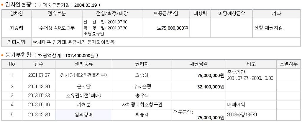 이때 임차인의 대항력여부는 자신의 권리(전세권)로 판단하지 않고, 2001.12.20근저당으로 판단합니다. (아래판례)