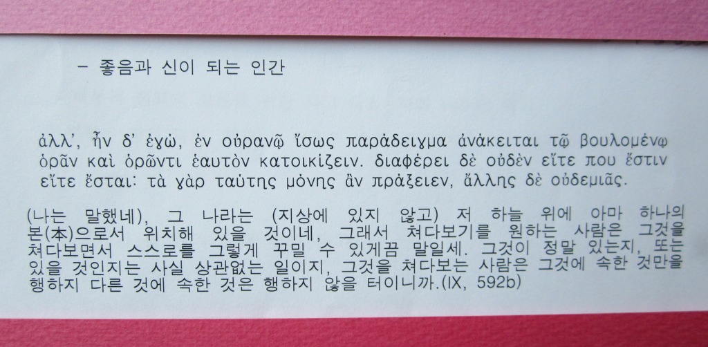 ...마지막 부분을 희랍어와 우리말로 두 차례, 마치 한 편의 시를 낭독하듯 들려주셨습니다.