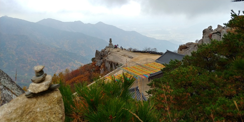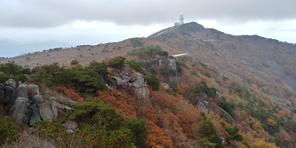 우리나라 사찰 중 태백산 망경사와 지리산 법계사 다음으로 높은 산에 위치한 비슬산 大見寺(해발 1001m). 신라 흥덕왕때 창건된 사찰로 임진왜란시 불탄 후 1900년 중창 되었으나 1917년 조선총독부에 의해 강제 폐사되었음. 大見寺 대웅전이 일본쪽을 바라보고 있어 대마도를 끌어 당기고 일본의 기세를 꺾는다는 이유였다고 한다. 100년 가까이 절터만 남아 있다가 2014년 대웅전을 비롯한 4동의 건물이 복원됨. 대견사 삼층석탑 - 비슬산 남쪽 자락 대견사 앞에 위치한 3층 석탐으로 통일신라 후기에 제작되었다고 하며 절벽의 바위 위에 세워져 있다. 비슬산 조화봉(해발 1057m)에 설치된 강우레이더 관측소 비슬산 대견봉에 오르다. 해발 1035m |