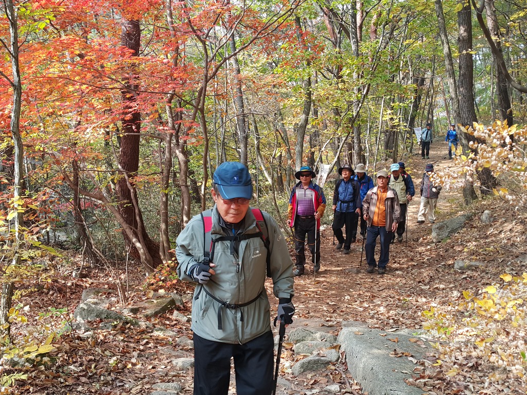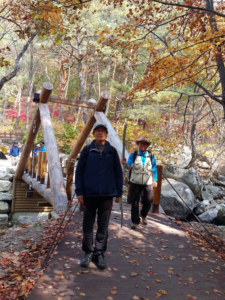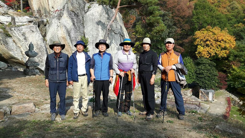 오늘은 그동안 너무나 기다리던 남북 이산가족들의 상봉하는 날이다. 날씨도 쾌청한 날이라 한결 더 정겹게 느껴 진다. 시월 셋째화욜 우리 하나산악회 친구들은 뜻깊은 이날을 맞아 월악산에 있는 만수계곡의 화려한 단풍과 신라의 마지막 공주인 덕주공주의 아련한 사연이 담긴 덕주사를 답사하고 돌아왔다. 오늘은 모두 17명의 청노인들이 참가하였는데 그 기백이 진짜 청년 못지 않아 그 활발한 모습이 너무나 보기 좋았다.