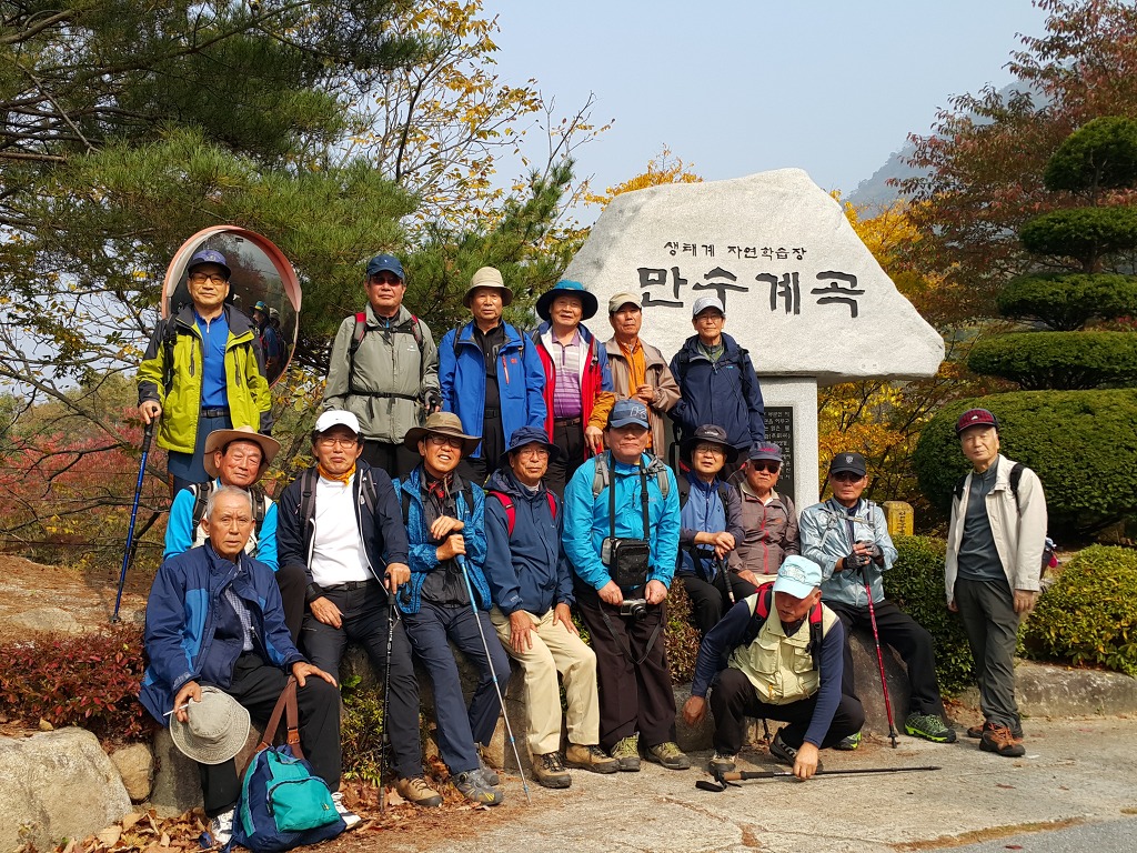 이러써 오늘 계획된 산행을 모두 마치게 되었고 전체적으로 볼때오늘 산행은 날씨도 좋았을 뿐더러 지금까지 산행한것 중에서는 단풍 구경은 제일 멋졌다고 볼수 있다. 그리고 만수계곡은 오늘 참가한 17명이 모두 완주했다는걸로 높이 평가할수 있겠다.