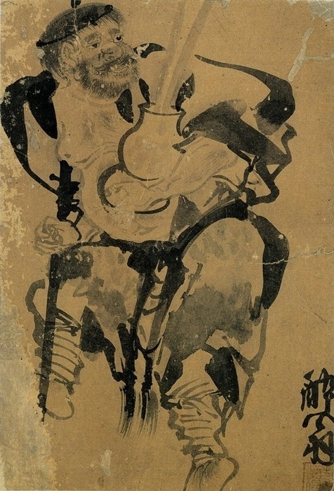 저는 유명한 달마도 뿐 아니라 시모노세키 박물관 소장의 <습득도>와 평양미술관 소장의 <박쥐를 날리는 신선>등의 그림을 보면서 그의 의습선(衣褶線)과 표정, 작품에 퍼져있는 선기 등이 결코 조선 최고의 화가인 김홍도에 비해 떨어지지 않다고 생각합니다. 특히 저 빠른 속필로 그려진 의습선을 보면 과연 신필로 불릴 자격이 충분하다고 생각됩니다.