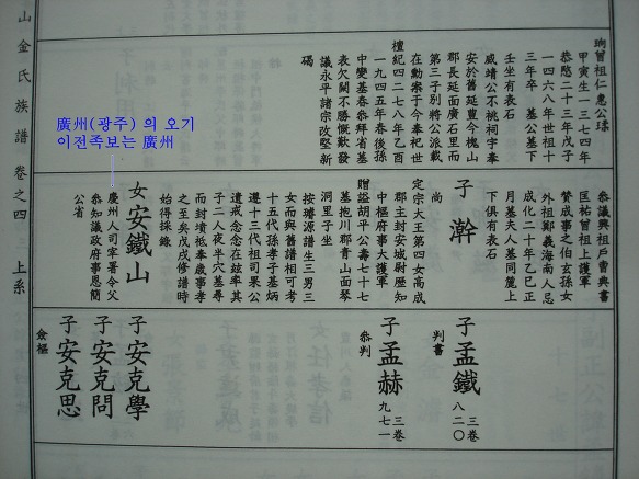 안철산 본관 오기(광주인을 경주인으로 오기) * 족보간행시 인쇄잘못