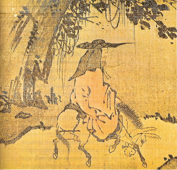 후대 미술사가들의 일부는 이 그림을 겨울에 나귀를 타고 다리를 건너는 그림인 <패교기려도>로 해석하곤 합니다. 기려도는 나귀를 타고 가는 선비를 그린 그림을 통칭하여 부르는 말인데 기려도 중 특별히 다리를 건너는 그림을 <패교기려도>라고 부릅니다.