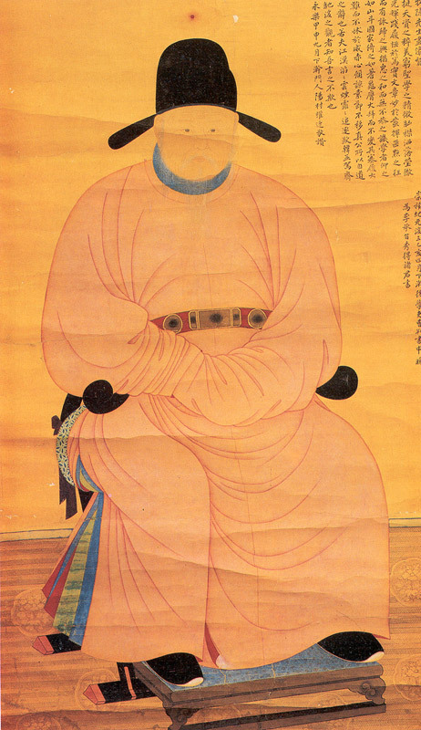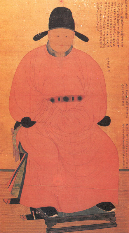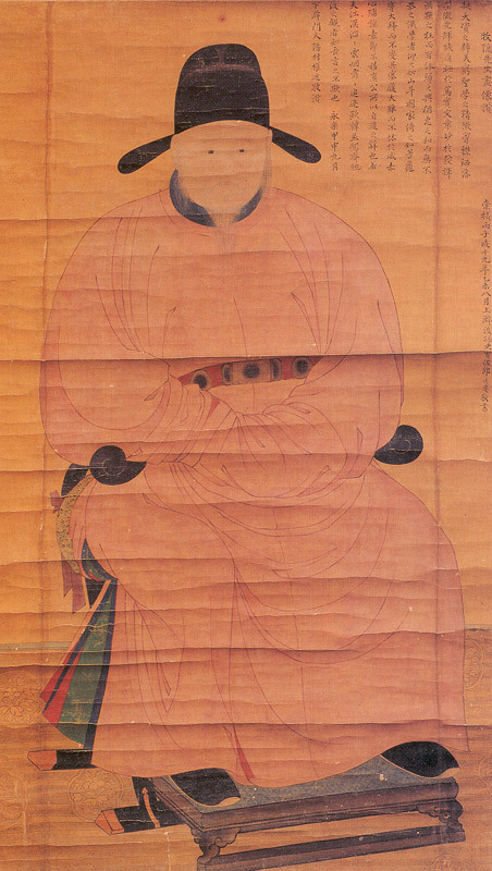 작품은 실물과 거의 같은 규모이며 의자에 앉아 있는 전신상으로, 낮은 사모(紗帽)를 쓰고 엷은 홍색의 단령(團領)을 입고 있다. 두 손은 앞으로 모아 소매자락 안에 넣은 공수(拱手) 자세를 하고 있고 발 아래에는 족좌대(足座臺)가 그려져 있다.