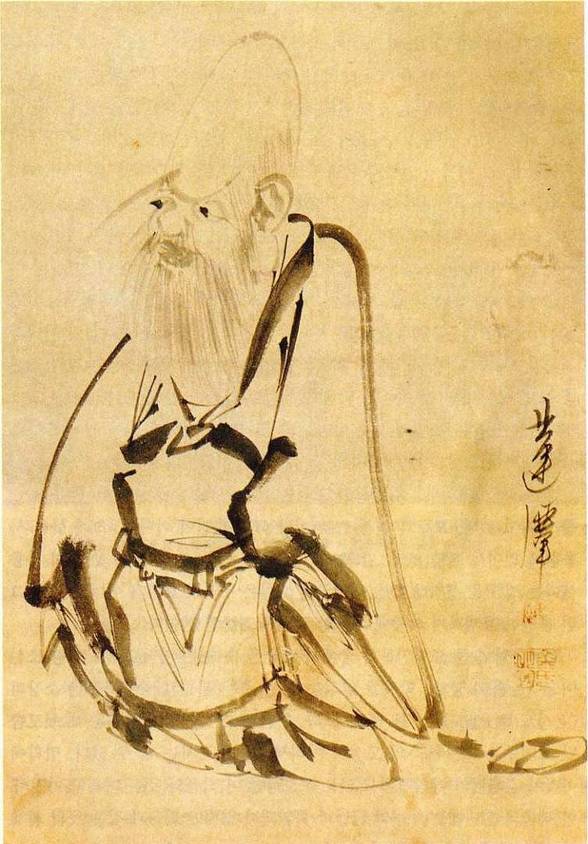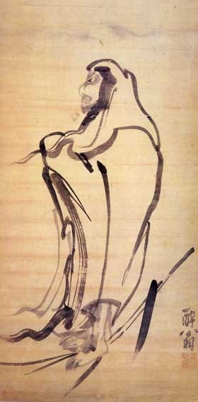 남인도인으로서 6세기 경 중국에 건너가 선종의 시조가 되었다는 보리달마의 모습은 선종화의 중요 화제로서 즐겨 다루어지던 것이다. 여기서는 두포(頭布)를 달마의 상반신만을 묘사했는데, 9년 동안의 면벽좌선으로 고양된 그의 내면 세계가 대담하고 힘찬 몇 번의 붓질로 잘 포착되어 있다.