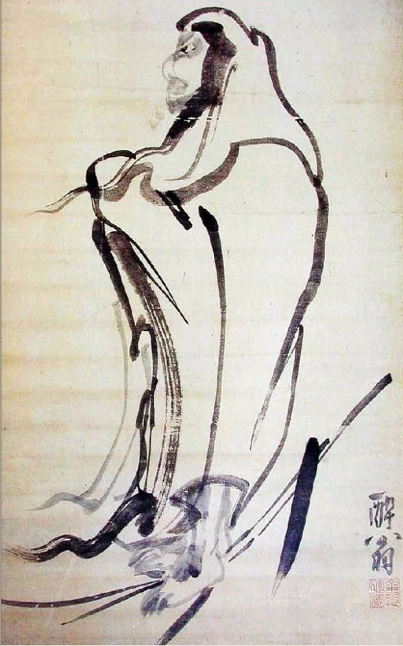 담묵으로 비교적 섬세하게 묘사된 얼굴에 비해, 의복부분은 죽죽 그어댄 활달한 농묵의 필선으로 간략하게 표현되었다. 주춤거리는 곳이 없는 빠른 속도의 감필묘(減筆描)는 김명국의 세련된 기교를 말해준다.