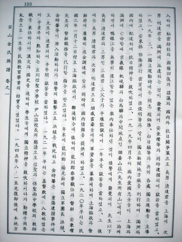 독립운동가. 본관은 안산(安山) 아버지는 독립운동가 겸 교육자이신 김경념 (金敬念1882년-1950년) 이다.