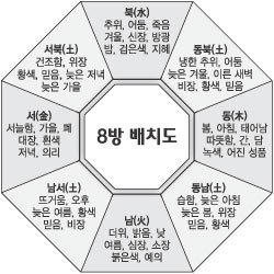 동양 역학에서는 정 북쪽은 물질과 에너지가 한 점으로 모여 있는 곳으로 어두운 곳이다. 그리고 동남서는 밝은 곳이다.