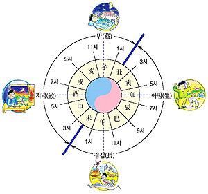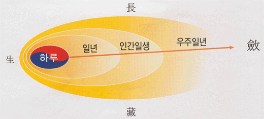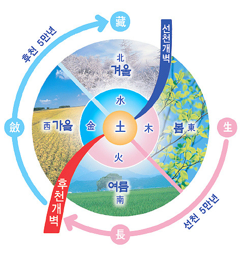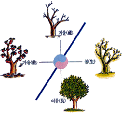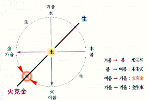 東은 상승하는 木의 기운과 西는 하강하는 金의 압축과정을 알 수 있다.
