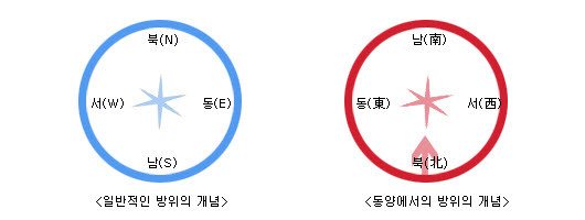동양(東洋)의 방위(方位)가 다르다는 데 기인한다.