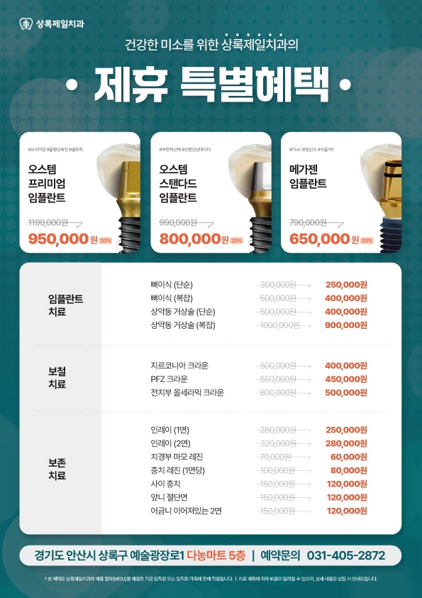 ■ 특별 혜택: 임플란트, 보철, 보존 등 비급여 진료비 특별 할인