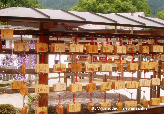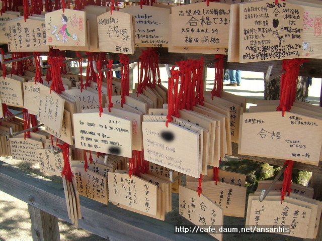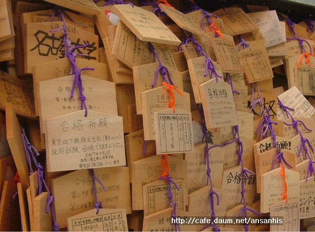 일본인들은 자기의 소원을 직접 써서 신사앞의 틀에 걸어놓고 간절히 기도한다.